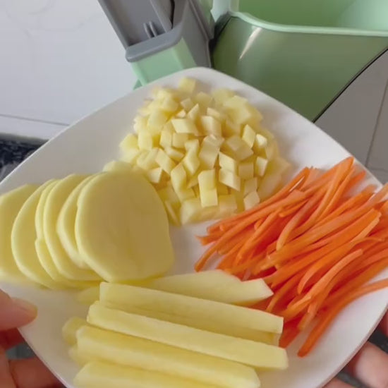 Product Name: Slicer- Slicer for Vegetables, Meal Prep with Thickness, Size Adjustment Package Contains: It has 1 Piece of Slicer Material: Stainless Steel & Plastic Color: Colour as per availability Length: 12.6inch Breadth: 4.72inch Height: 2.36inch Combo/Set Of: Pack of 1 Additional Information: Features: - Safety: This adjustable vertical mandoline cutter has safe blades and stability brought by the suction cups underneath which make it safer. -Portable Design: Retractable handle and folding stand make the adjustable vegetable cutter more space, save space, and portable. Weight: 900gm